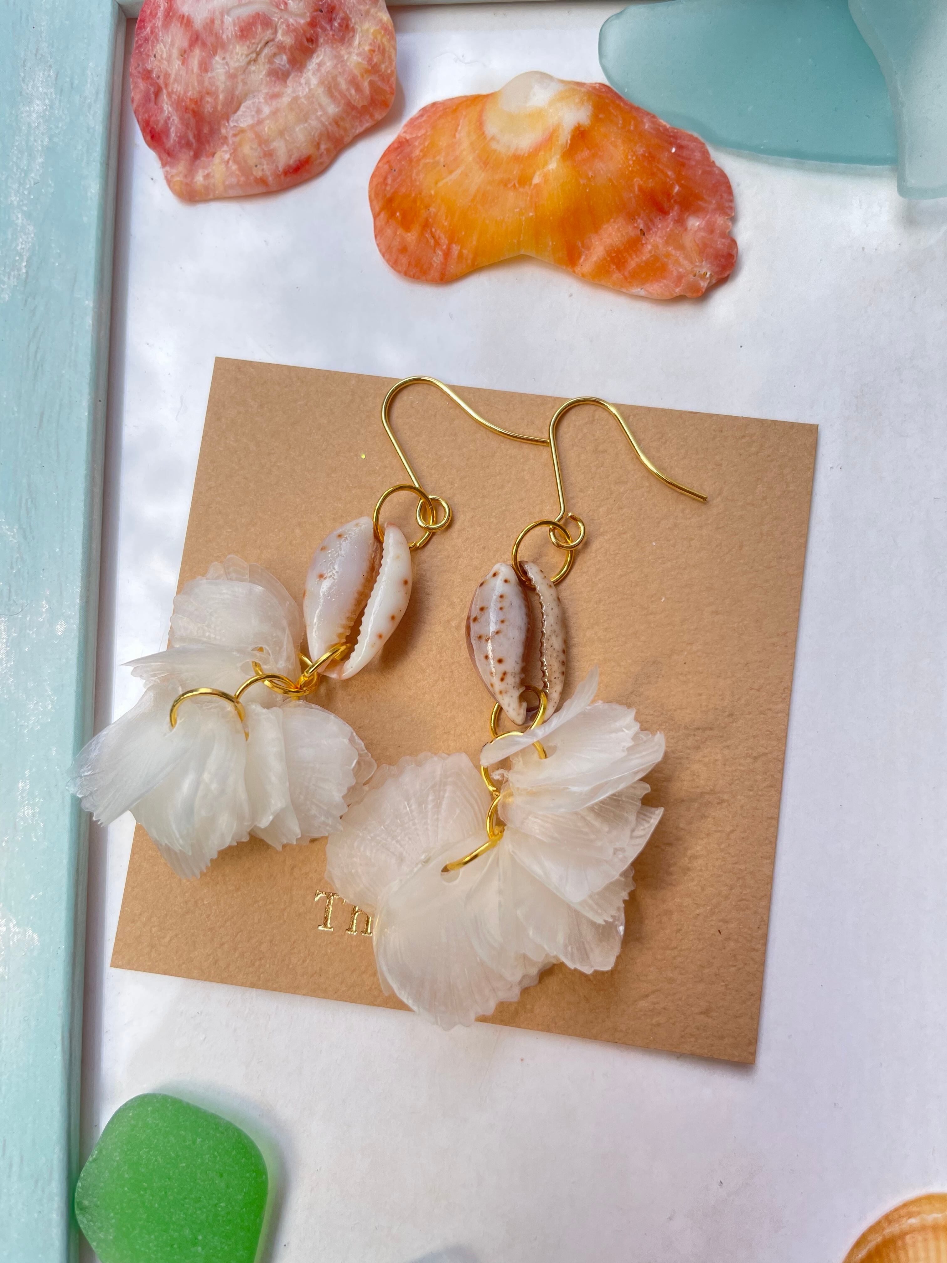 *タカラガイは、丸みがえる貝ですが今回使用したのは、私がビーチコーミングで出会った、綺麗に半分に割れているものです。自然の力はすごいですね(^^)
