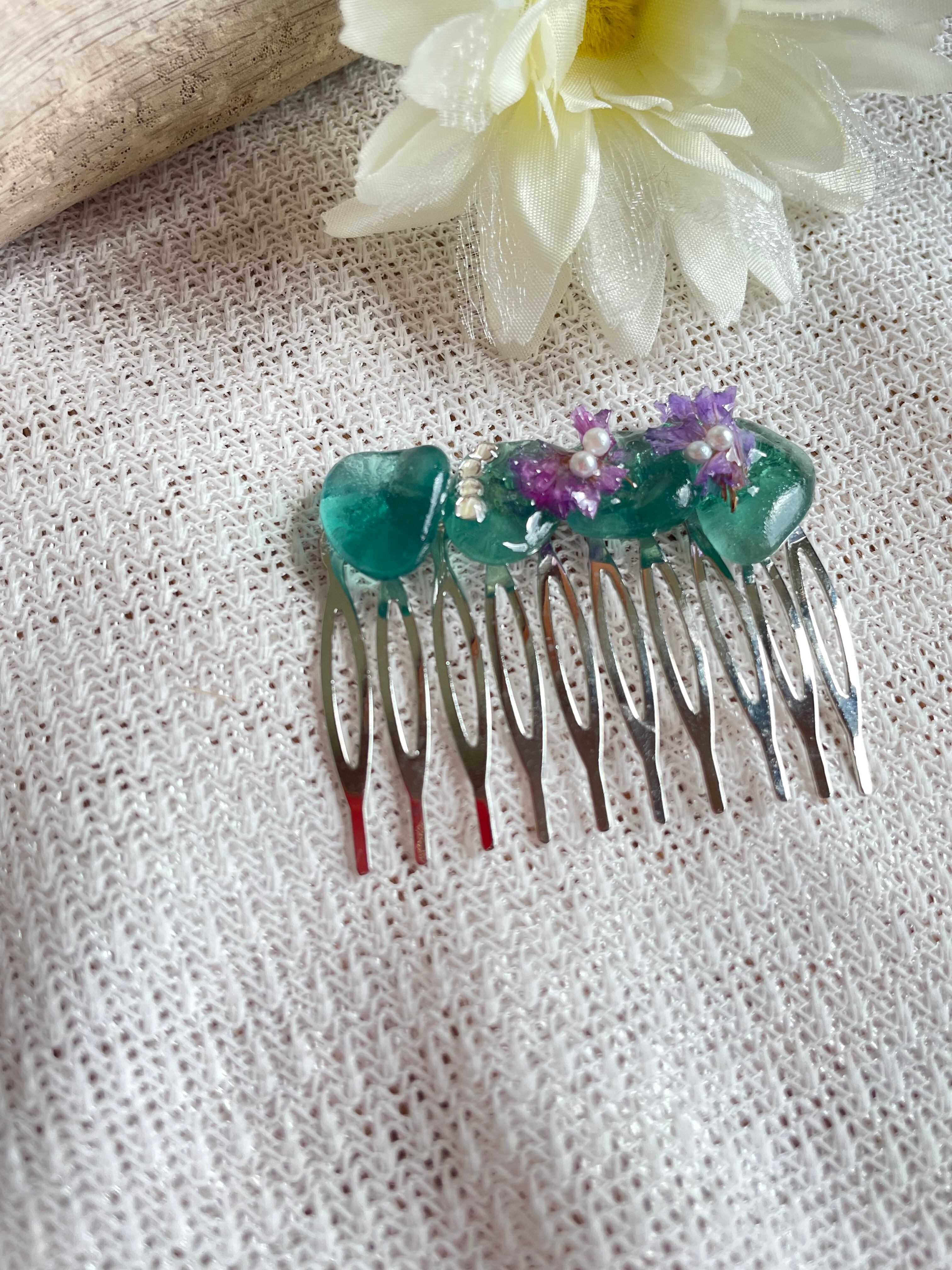 ブルーの輝きシーグラスヘアアクセサリー